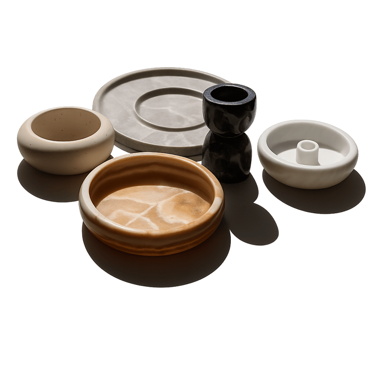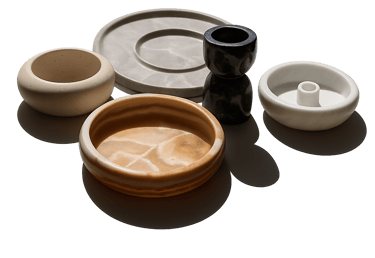 We offer unique decorative items, crafted mainly from natural marble and travertine. Each piece is carefully selected for its artisanal character and timeless elegance.